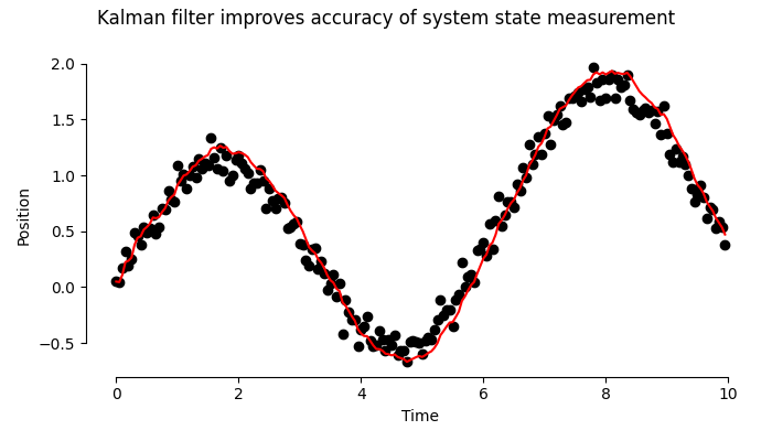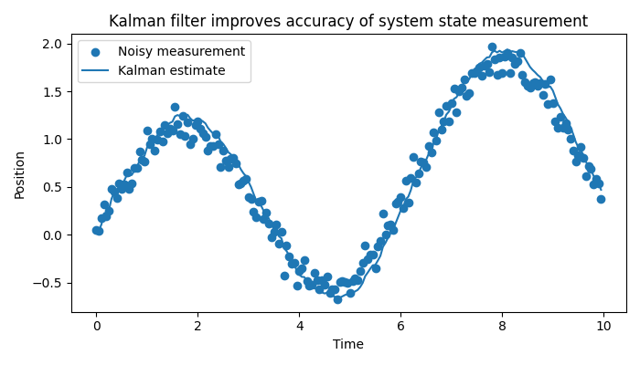 Our main message could be almost exactly this: "Kalman filter improves accuracy of system state measurement." This will be the title of our plot.